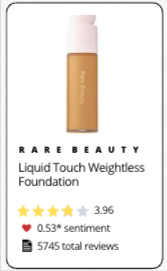 Rare Beauty has taken steps to address this issue by introducing a fun and personalized quiz on its website to assist customers in discovering their perfect foundation shade. Despite this effort, our review analysis suggests that ensuring the accessibility of this tool across various platforms, such as Sephora, is crucial for enhancing the customer experience and expanding reach.