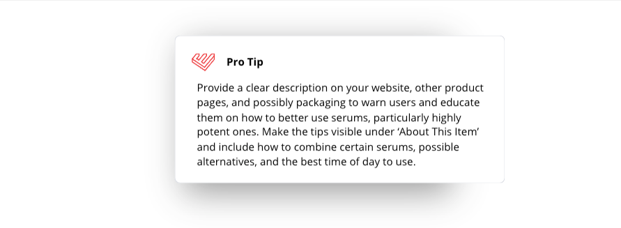 2. Better educate consumers on using (highly potent) serums to reduce complaints and increase ratings
