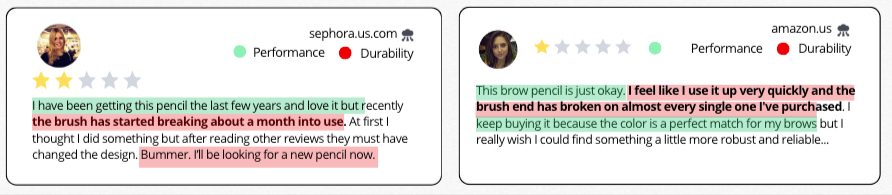 From foundations to creams and award-winning serums, we delve into four prevalent challenges in cosmetic product development and marketing by addressing common consumer complaints about skincare and makeup. Our actionable recommendations provide managers with practical insights that can be promptly applied to their eCommerce product pages. Swift implementation of these strategies can swiftly enhance customer satisfaction and boost overall product performance.